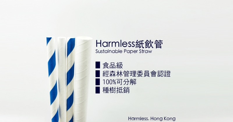 Harmless 的紙飲管符合食品認證,所使用的紙張亦是來自森林管理委員會(FSC)認可的森林。每賣出一萬支紙飲管,更會種植一棵樹,達至100%的環保生產過程。